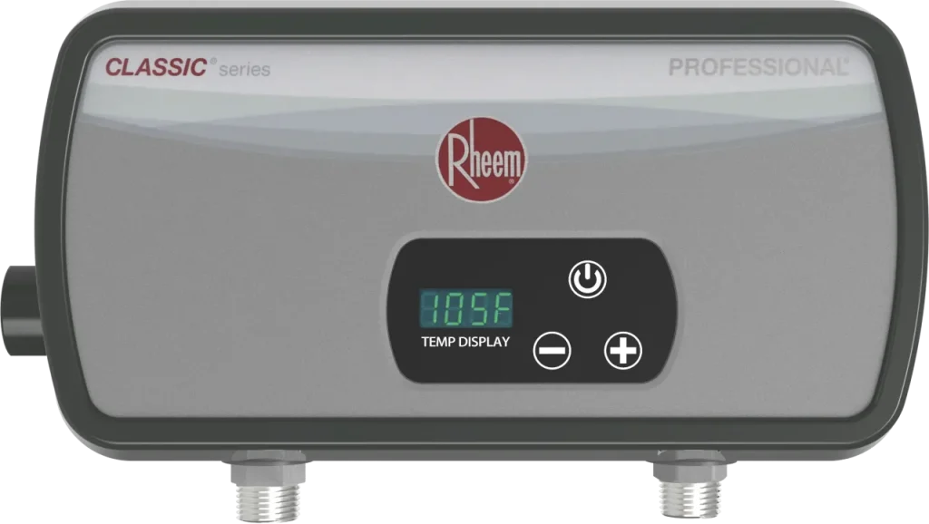 The Rheem RTEX‑08 Electric Tankless is one of the smaller but surprisingly capable electric on‑demand water heaters in Rheem’s Professional Classic line.